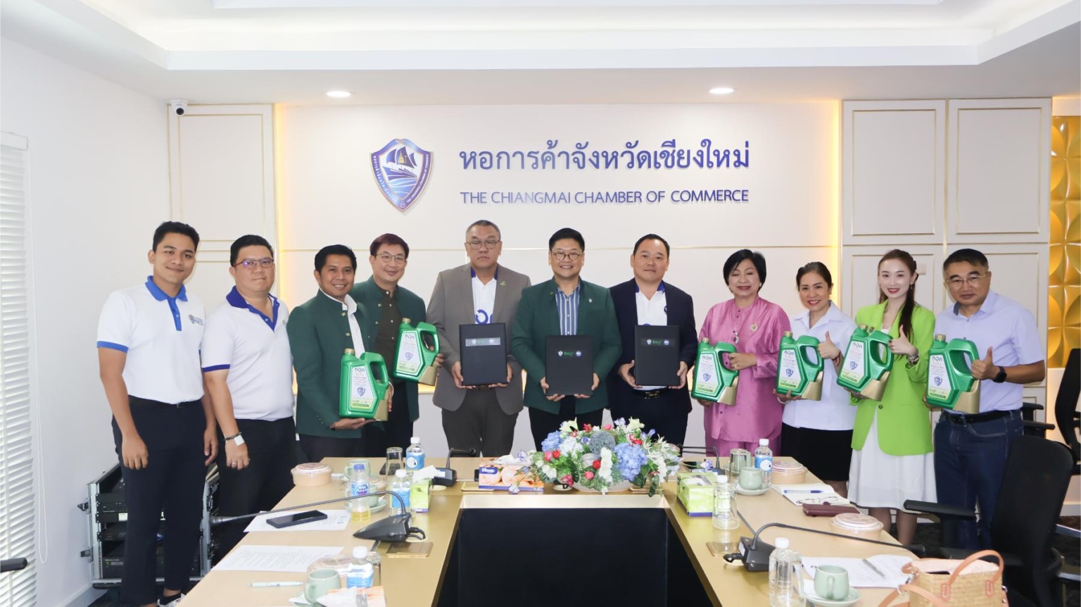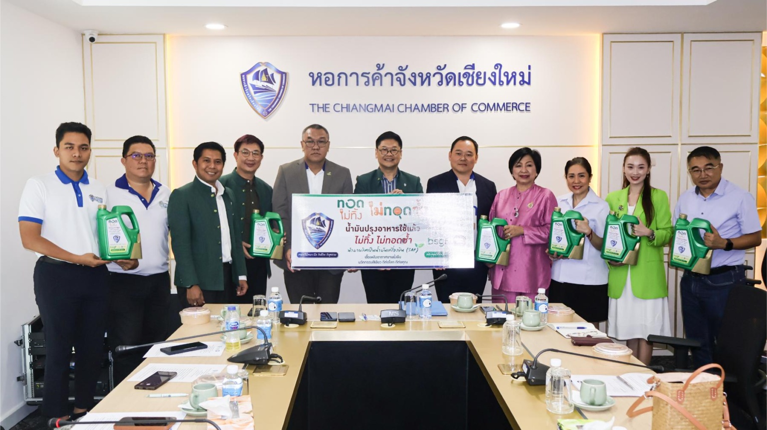 วันที่ 28 พฤษภาคม 2567 หอการค้าจังหวัดเชียงใหม่ นำโดย คุณจุลนิตย์ วังวิวัฒน์ ประธานกรรมการ ร่วมกับ บริษัท บีเอสจีเอฟ จำกัด และบริษัท ธนโชคน้ำมันพืช (2012) จำกัด ร่วมพิธีลงนามในบันทึกข้อตกลงความร่วมมือ ในกระบวนการจัดการน้ำมันปรุงอาหารใช้แล้ว นำมาผลิตเป็นน้ำมันเชื้อเพลิงอากาศยานยั่งยืน (SAF) เพื่อลดผลกระทบสิ่งแวดล้อมและส่งเสริมสุขภาพที่ดีของผู้บริโภค ณ สำนักงานหอการค้าจังหวัดเชียงใหม่